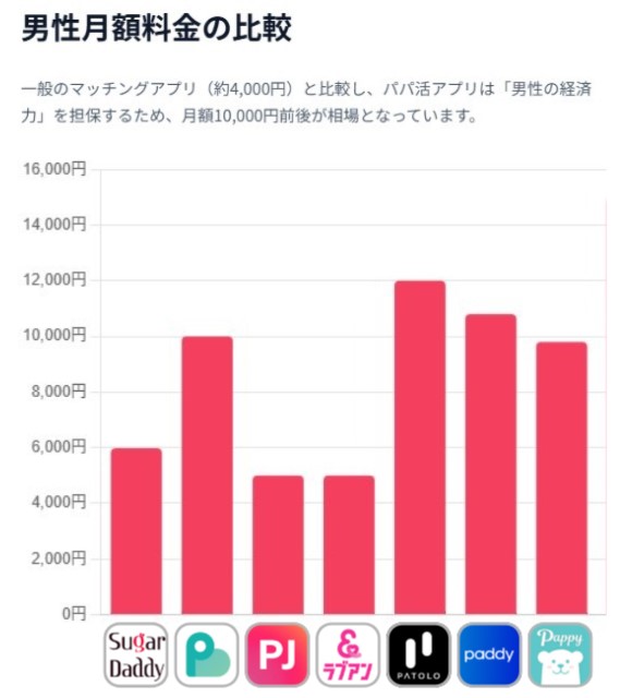 男性料金が高めなアプリほど太パパ率が高まりやすい